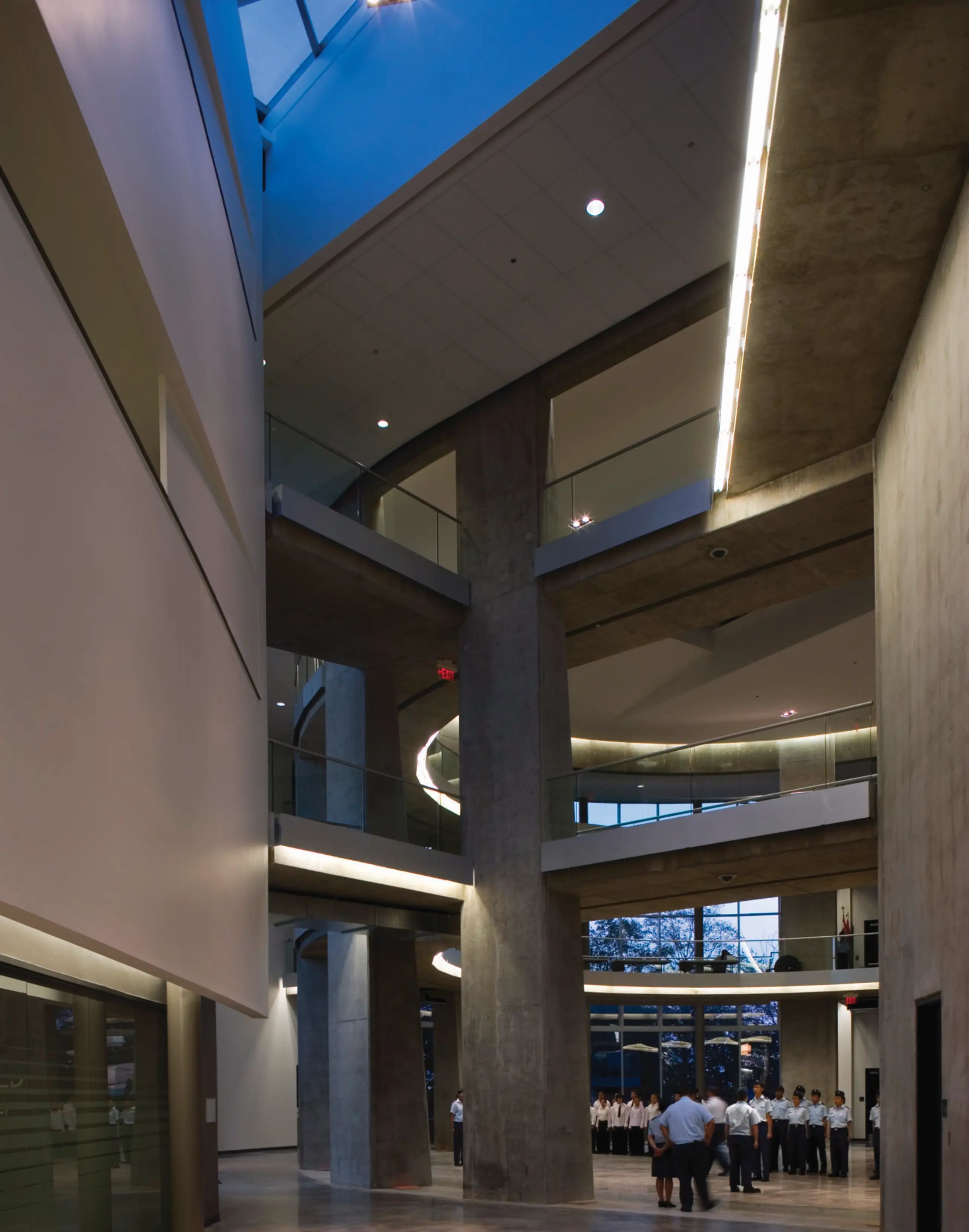 The BCIT Aerospace Technology Campus, designed by Kasian, bridges the bustling YVR airport and a serene residential neighborhood. This state-of-the-art facility supports BCIT’s expanded aerospace programs, doubling graduate capacity. It features advanced multimedia technology, a 40,000-square-foot hangar, and over 40 classrooms and laboratories. Sustainable architectural elements ensure cutting-edge training for the aerospace industry while respecting the community and natural environment. Located near YVR, residential areas, the Fraser River, highway frontage, and under a restrictive flight path, the campus faced unique design challenges. Kasian’s solution integrates the campus with its surroundings, incorporating sustainable principles and celebrating its dynamic aerospace program.