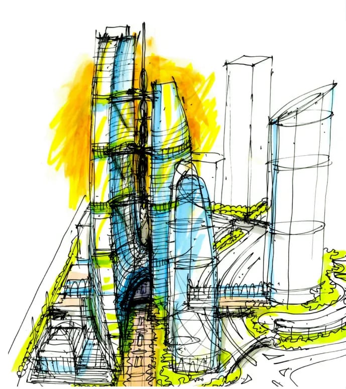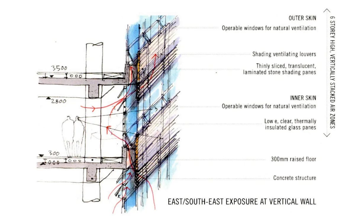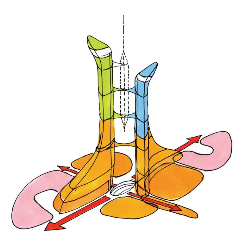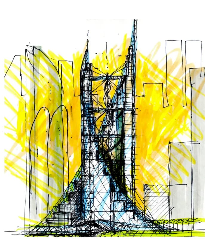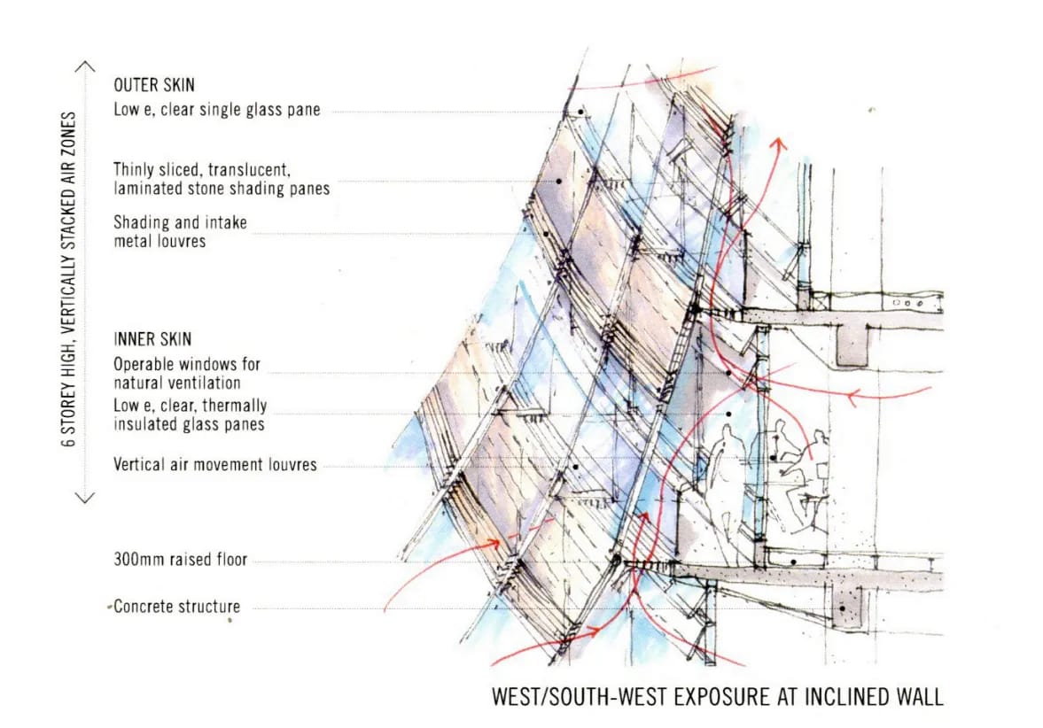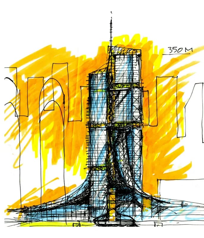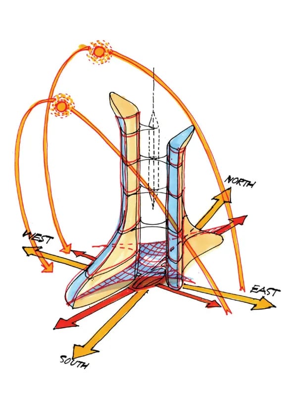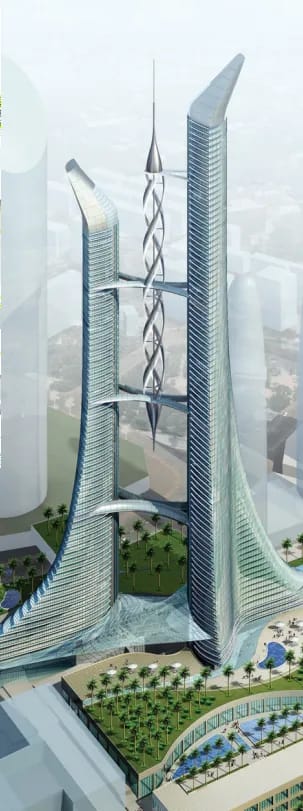 An iconic, high-performance building that speaks to the optimism of a sustainable future. Grounded in the earth and reaching for the sky, the dramatic, soaring form of the paired towers evokes an organic sculpture shaped by the winds of the desert.