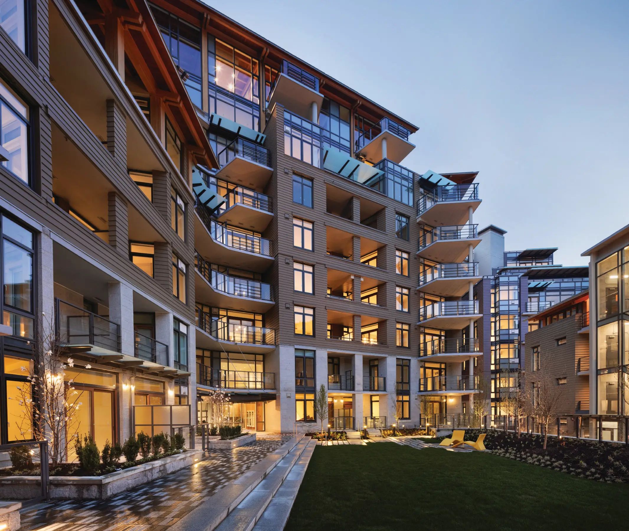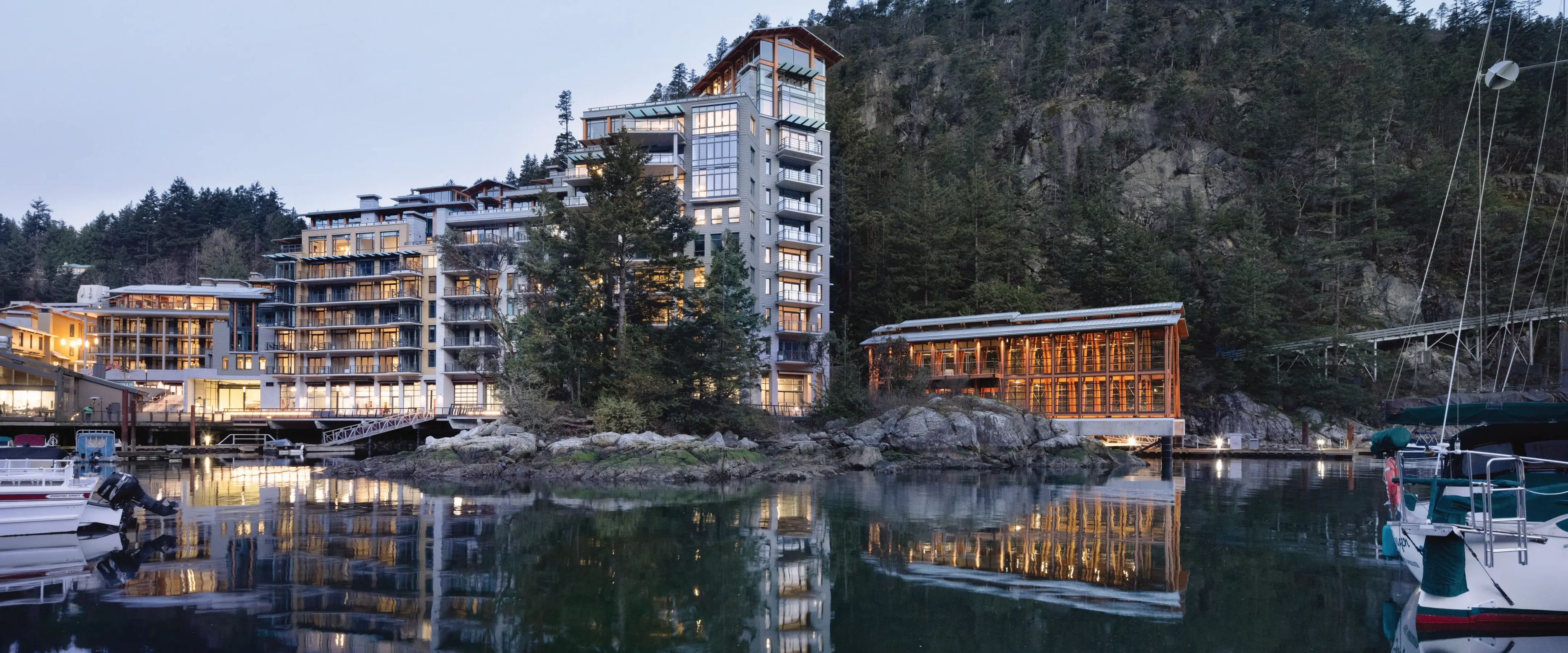 Sanctuary at Horseshoe Bay is a 159 unit mixed-use development situated at the north-west corner of the Horseshoe Bay community adjacent the existing Sewell’s Marina. The project was conceived by the Sewell family to support their marina operations through development of an under-used surface parking lot. Paul Merrick worked closely with Dan Sewell and members of the community to develop a village of West Coast buildings distributed across the sloped site and nestled into the prominent hillside behind. The resulting collection of spaces and unique moments forms a bookend to Horseshoe Bay and aims to reinvigorate the community. The project incorporates a wide range of building types which move from a townhouse ‘front door’ along Nelson Avenue to taller volumes stacked against the hill and overlooking the harbour.