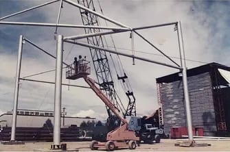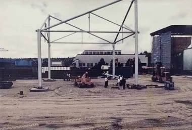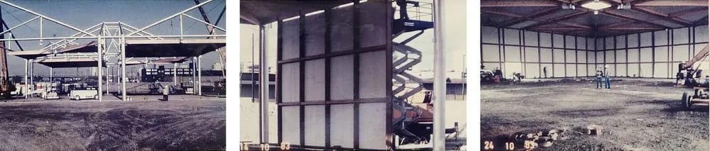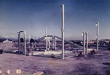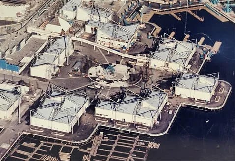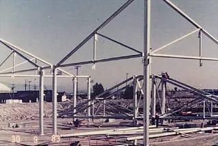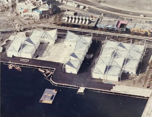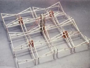 A prefabricated building system designed for the Expo 86 International Exhibition pavilions. It uses four basic building components and allows for the construction of buildings that are square or rectangular in plan with areas from 250 to 5000 square meters. Due to the specific shape of these components and their assembled configurations, these buildings can have large, column-free spaces with roof spans ranging from 15 to 51 meters long. Furthermore, the specific configuration of structural components also makes the buildings largely unsusceptible to differential settlement of the foundation. The bolted connections of the components allow the building to be easily dismantled and relocated for other uses.