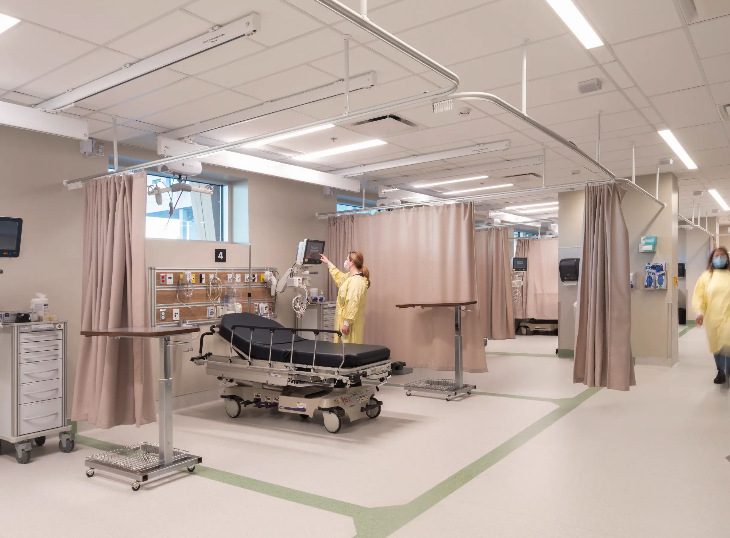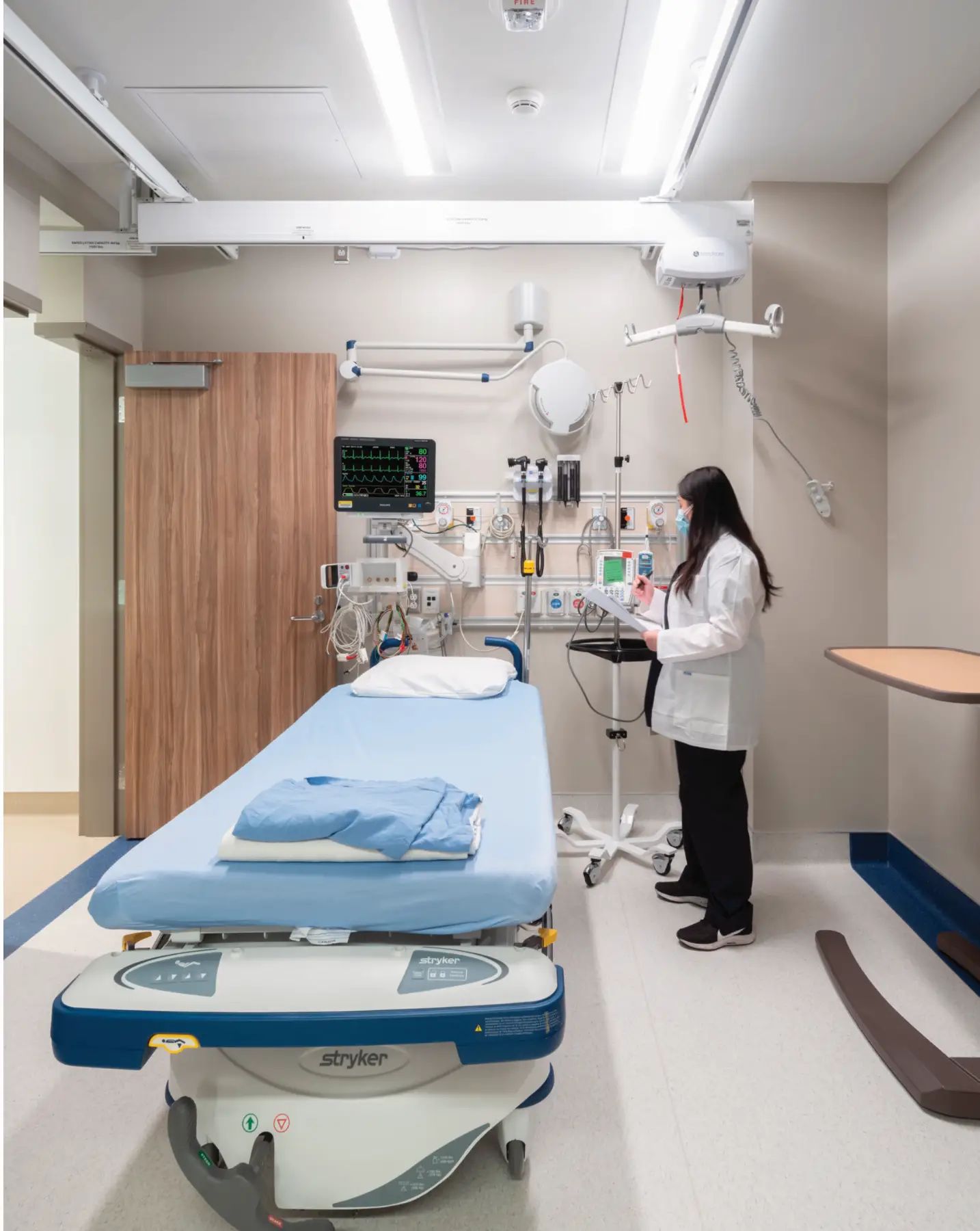 Peace Arch Hospital serves White Rock and South Surrey, BC, where 52% of residents are 55 or older, and the population is expected to grow from 109,000 in 2016 to over 131,000 by 2030. To address the aging population and rising healthcare demand, Kasian’s Healthcare Team led the hospital’s expansion and renewal, including a new emergency department, operating rooms, and a medical device reprocessing department (MDRD). Originally built in the 1960s, the undersized facility needed modernization to meet current healthcare standards. Kasian maximized site potential by expanding medical space, improving operational efficiency, and enhancing the patient, family, and staff experience. The team advocated for additional upgrades through a second-story addition, creating a healing environment that supports faster recovery, reduces stress, and promotes the well-being of all users.