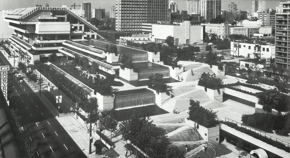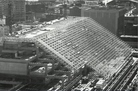 The complex provides more than 1 million square feet (93,000 square metres) of usable area and occupies three blocks of Vancouver’s downtown core. The complex consist of the Vancouver Lawcourts, Provincial offices and commercial and public areas. The reinforced poured-in-place concrete, precast and prestressed elements form a structural system which is consistent throughout the entire complex and is highly integrated with mechanical, electrical and spatial requirements.