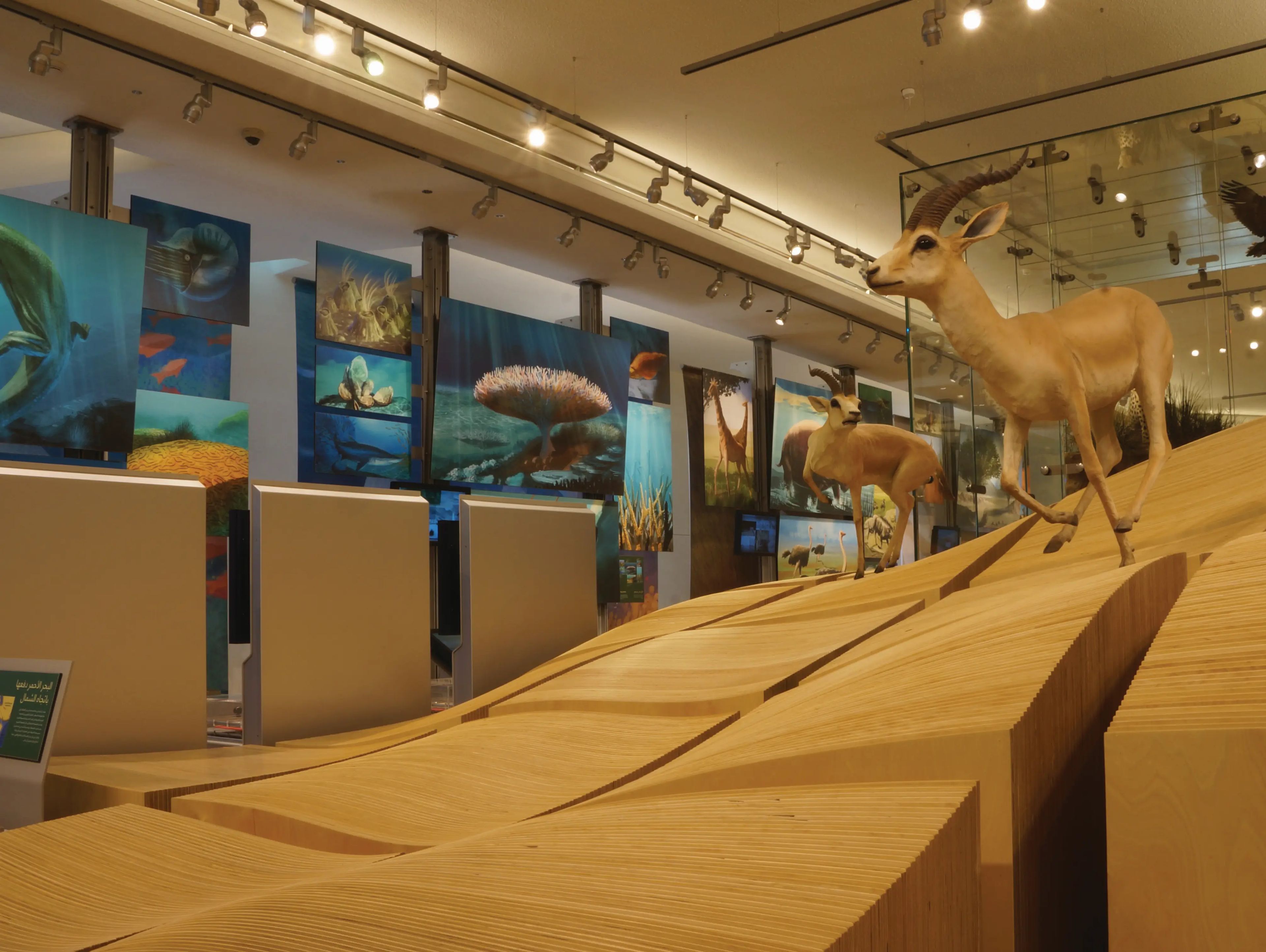 The Sheikh Zayed Desert Learning Centre is an important educational facility combining knowledge and learning through interactive exhibits, multimedia and visual materials that are specially designed for this centre by world-class experts and specialists. The UAE cultural guides that have been trained over the past years to provide a unique experience for visitors are one of the most important components of this experience to ensure providing a true picture of the of the United Arab Emirates natural environment. The centre consists of five interactive galleries: Sheikh Zayed Tribute Hall, Abu Dhabi Desert over Time, Abu Dhabi's Living World, People of the Desert and Looking to the Future. During the tour, visitors will move on a journey through time as stories and movies take them to the past, present and future of the UAE, to reconsider their relationship with the environment and encourage them to communicate with it and to adopt more sustainable lifestyles.