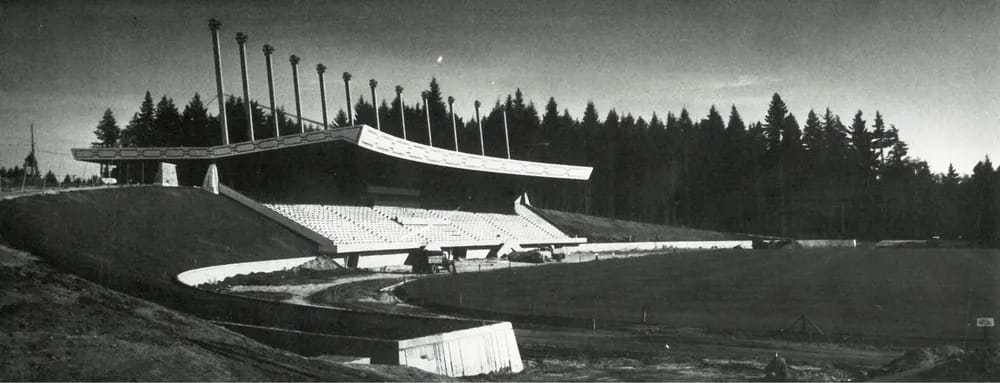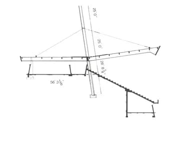 A column line separates the grandstand from the other covered facilities and divides the roof area into two equal segments. As a result of the vertical loads being in equilibrium with the columns, the idea of a suspended roof structure evolved.